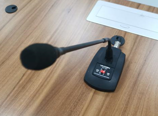 会议话筒:按下话筒的红色开关按钮,红灯亮起即可使用。