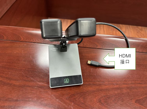 无线会议话筒:长按话筒侧面中间小圆型按钮开机,按下话筒上按钮即可开启,再按一下显示关闭即为静音。