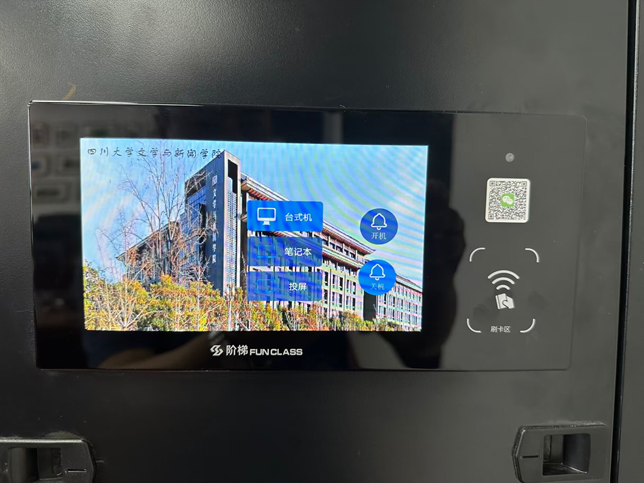 一、打开音箱及话筒设备机柜的总电源。此会议室采用一键开关装置,轻点机柜上小屏幕,屏幕会显示内容,点击屏幕上“开机”,机柜内设备会相继启动,同时,稍等几十秒,房间内LED大屏会自动打开,关闭系统时,只需点击小屏幕上“关机”,即可关闭所有设备。