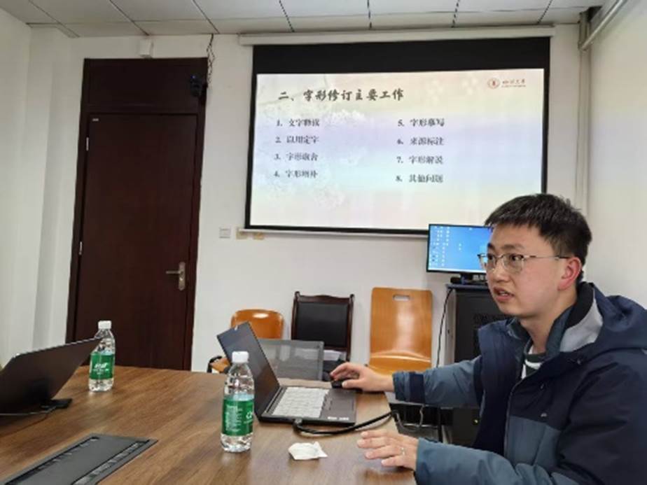2025年3月29日,《汉语大字典》修订课题组召开古文字修订专题例会。滕胜霖老师介绍了课题组过去两年的修订进度和本年度的基本规划。
